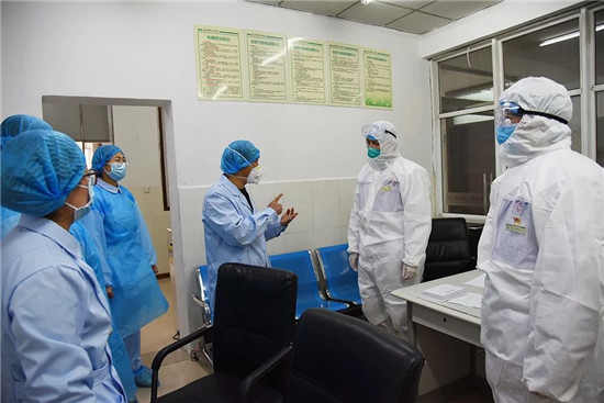 1月27日上午,鄲城縣人民醫(yī)院院長于健、書記高飛身著隔離服深入到發(fā)熱門診隔離區(qū)、感染科隔離病房及診室,安排部署防控工作,指出:按照控感工作要求,為防止交叉感染,從即日起,發(fā)熱門診、感染科病房、CT室、放射科、檢驗科等防疫一線工作人員,24小時工作在一線,直到疫情結束。