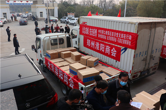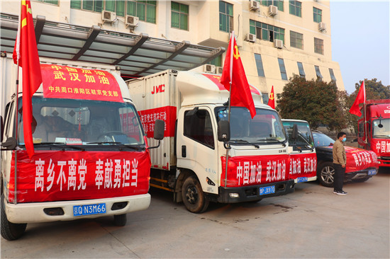 2月4日,隨著一輛輛裝滿物資的汽車緩緩駛?cè)胫芸?,周口市淮陽區(qū)駐外流動黨員黨支部的一場捐款捐物活動如期進(jìn)行。