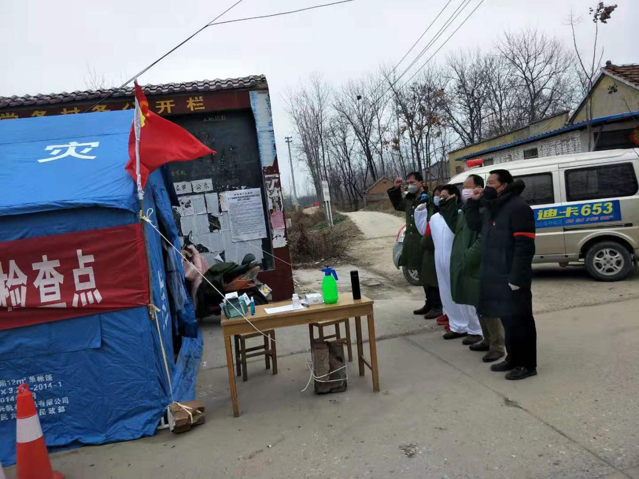 “我莊嚴(yán)宣誓,為維護(hù)人民群眾身體健康及生命安全,全力做好新型冠狀病毒感染的肺炎疫情防控工作,誓死捍衛(wèi)新時代黨員干部的使命與擔(dān)當(dāng)?!边@是付集鎮(zhèn)黨委副書記曹懷永帶領(lǐng)張埝卡點(diǎn)宣誓的場景。2月5日,這段感人而又讓人充滿信心的宣誓聲,在付集大地相繼響起,張埝卡點(diǎn)一線臨時黨支部正式成立。