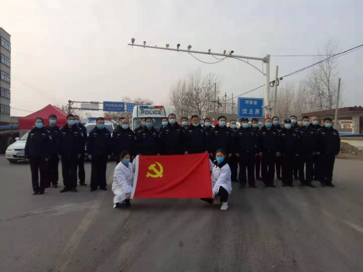 沈丘縣公安局黨委及時批復(fù),成立防治新型冠狀病毒引發(fā)肺炎疫情臨時黨委,局黨委書記、局長李恒新?lián)闻R時黨委書記,在確診病例實施集中隔離封控的六個卡點和五個省界治安卡點成立臨時黨支部,由帶隊局黨委委員兼任臨時黨支部書記。成立11支共產(chǎn)黨員先鋒隊,每天集合、部署檢查工作任務(wù)時,舉行重溫入黨誓詞宣誓活動。以此,牢固樹立參戰(zhàn)民警的黨員意識,時刻牢記黨員身份,始終以飽滿的精氣神投身防疫抗疫阻擊戰(zhàn)。