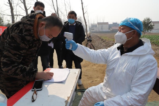 起初,苑統(tǒng)俊配合村干部在村里宣傳疫情防控政策、方法,1月25日,我省啟動一級應急響應,港區(qū)迅速做出響應,在轄區(qū)內(nèi)各個村莊社區(qū)設(shè)置疫情監(jiān)控點,限制人員流動,全天候監(jiān)測進出人員身體狀態(tài)。苑統(tǒng)俊擔起監(jiān)控點村醫(yī)的職責,負責該村一至四組的疫情防控。他每天騎電動車前往孫莊村監(jiān)測點值守,為過往人員測量體溫、觀察外地返鄉(xiāng)人員狀態(tài)、登記觀察正處在隔離期的從湖北、武漢返鄉(xiāng)人員體溫數(shù)據(jù),為鄉(xiāng)村干部開展防控工作提供技術(shù)支持。