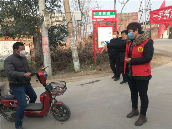 臘月三十那天,餃子剛剛包好,王愛月同志臨危受命,根據(jù)鎮(zhèn)黨委安排部署,果斷迅速組織布防嚴控,立即進入疫情防控第一線。鄉(xiāng)鎮(zhèn)召集各村黨支部書記召開會議,分析研判嚴峻形勢,要求各村支部發(fā)揮基層組織“戰(zhàn)斗堡壘”作用,立即摸清情況,穩(wěn)定群眾情緒,增強群眾信心;鎮(zhèn)中心衛(wèi)生院給各村醫(yī)安排防疫工作。會后,村兩委班子第一時間成立了奉母鎮(zhèn)后邵村防控新冠肺炎疫情領(lǐng)導(dǎo)小組,王愛月?lián)胃苯M長,協(xié)助支部書記制定全村防控應(yīng)急處置方案,負責處理疫情持續(xù)期間各類防控工作,結(jié)合后邵村實際,從疫情摸排、防控物資采購、應(yīng)急值守、各場所消毒、道路設(shè)卡等各方面全面做好準備。全村組建6個排查組對全村居民逐戶排查,她親自帶隊逐戶排查所有外來人員,確保不漏一戶一人。之后,建立排查臺賬,及時準確掌控疫情動態(tài),為每位務(wù)工返鄉(xiāng)人員發(fā)放了注意事項告知書和宣傳單,對外出返鄉(xiāng)人員落實了包戶責任制。同時建立防控微信群,實時掌握他們的身體情況,解答他們的疑惑,全力做好心理疏導(dǎo)工作,切實解決鄉(xiāng)里鄉(xiāng)親的困難問題。