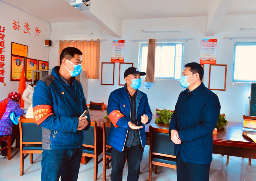疫情就是命令。大年初一上午,寧平鎮(zhèn)王寨村支部書記張永亮在鎮(zhèn)政府接到任務(wù)后,就匆匆忙忙趕到村室與在縣里接到疫情防控命令趕來的縣公安局駐寧平鎮(zhèn)王寨村第一書記朱金光一起,迅速召開駐村隊(duì)員、三委班子和全體黨員會(huì)議,研究部署疫情防控措施,成立由支部書記、駐村第一書記雙任組長(zhǎng)的疫情防控領(lǐng)導(dǎo)小組,吹響戰(zhàn)“疫”沖鋒號(hào)。
