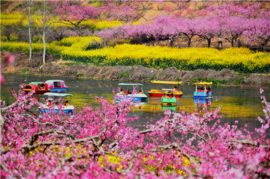 今年是黃橋迎來第十六屆桃花節(jié),鑒于疫情防控的需要,本屆桃花節(jié)不再聚眾舉辦,然而,燦爛如錦的黃橋,還是吸引著大批人們前來踏青賞花。3月24日,仲春的太陽(yáng)火辣辣的,依然阻止不了人們前來觀賞桃花的好心情,游人如織,攜家?guī)Э冢襞笠?,漫游在桃花深處,桃花飛紅的潁河里,大人帶著孩子們踏著游船,暢游花海碧水之間,游船點(diǎn)點(diǎn),讓人嘆為觀止。
