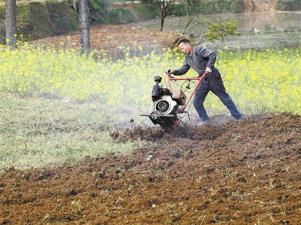 圖三 昨日,沈丘縣卞路口鄉(xiāng)一農(nóng)民正在用小型農(nóng)機(jī)犁地。連日來,氣溫不斷回升,當(dāng)?shù)剞r(nóng)民搶抓有利時(shí)機(jī),進(jìn)行犁地、澆水、除草等春季管理,田間地頭一派忙碌景象。 黃海濤 攝