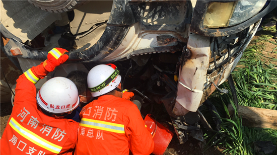 4月7日9時(shí)許,沈丘縣李老鄉(xiāng)劉堂村附近一輛攪拌車(chē)翻入溝內(nèi),司機(jī)人被困。接到報(bào)警后,沈丘縣消防救援大隊(duì)立即出動(dòng)前往救援。