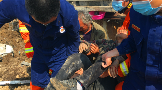 時(shí)間就是生命,在吊機(jī)工作人員和消防救援人員的密切配合下,變形的駕駛室被緩緩吊起,救援人員立即使用液壓擴(kuò)張器和液壓頂桿對(duì)駕駛室變形部位實(shí)施擴(kuò)張和撐頂。經(jīng)過(guò)大約20分鐘的緊張救援,傷員被成功救出,并交由家屬送往醫(yī)院救治。