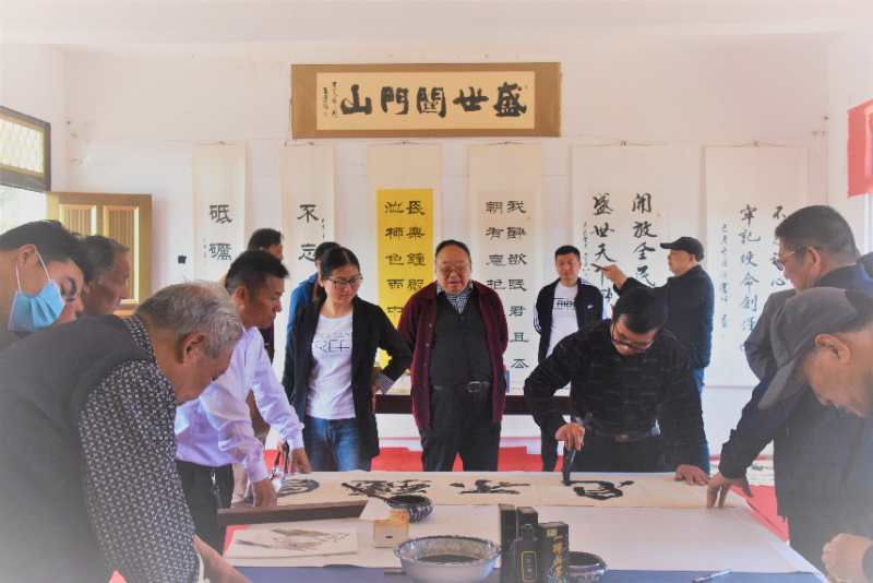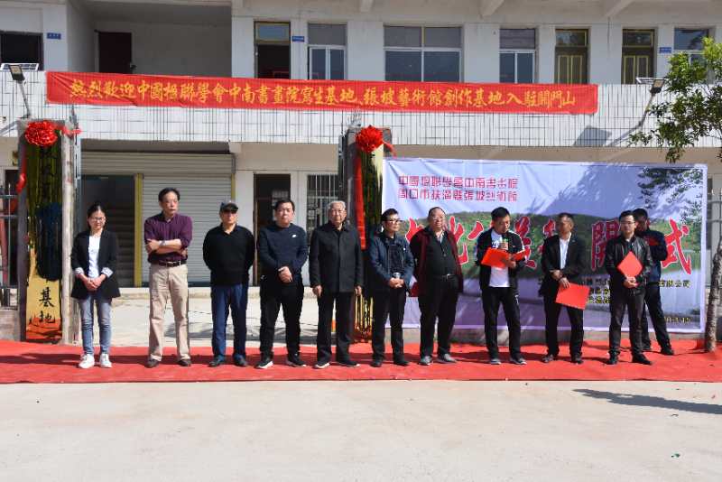 路晉成、張俊鵬、高麗、張紅先現(xiàn)場(chǎng)為中南書畫院關(guān)門山寫生基地、張坡藝術(shù)館關(guān)門山創(chuàng)作基地揭牌。書畫家們還現(xiàn)場(chǎng)揮毫潑墨,為村文化中心即興創(chuàng)作了書畫作品,并給當(dāng)?shù)鼐栀?zèng)了三十多幅書畫名家佳作。