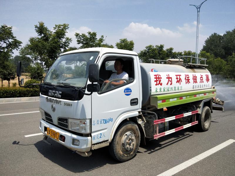 為了應(yīng)對市政灑水車輛不足的問題,港區(qū)環(huán)境攻堅辦積極調(diào)動社會力量,助力環(huán)保攻堅。目前轄區(qū)已有12家施工單位的14輛灑水車輛加入到愛心車隊中,并在車身上印制了“我為環(huán)保做點事”的宣傳標語。