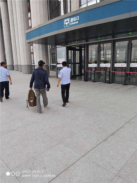 晚上8時許,陳劍鵬安排副所長趙良帶領(lǐng)輔警楊國強、李偉平,將該男子送到沈丘高鐵站踏上回家的路程,該男子多次為派出所民警鞠躬致謝,并流下感激的眼淚。