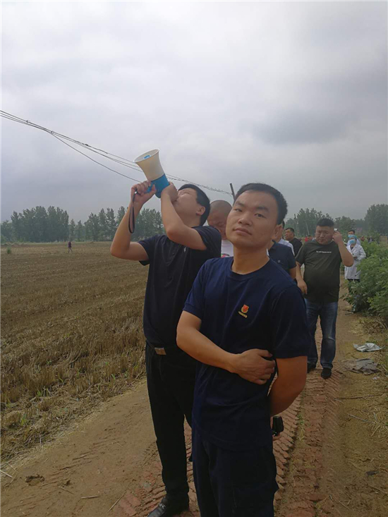 6月18日上午8時19分,付井鎮(zhèn)派出所值班民警趙良,韓高峰接到報警電話,一名山東省滕州籍男子因為感情矛盾在轄區(qū)高鐵附近一信號塔上準(zhǔn)備自殺。值班民警向所長陳劍鵬匯報后,陳劍鵬立即帶領(lǐng)民警霍玉亮、韓高峰以及輔警楊國強、孫海紅、王初中、范紅偉等人迅速趕到現(xiàn)場。