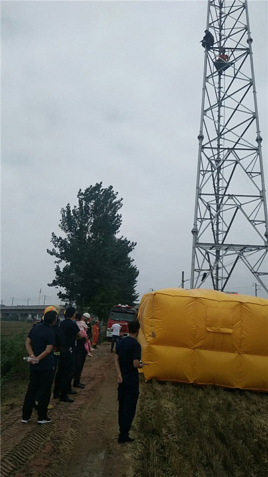 一名山東籍男子因感情矛盾,爬上位于沈丘縣付井鎮(zhèn)轄區(qū)一50多米高的信號塔上準(zhǔn)備自殺。6月18日上午,經(jīng)聞訊趕來的該鎮(zhèn)鎮(zhèn)長高光及派出所長陳劍鵬等人近4小時勸說該男子最終放棄輕生念頭。