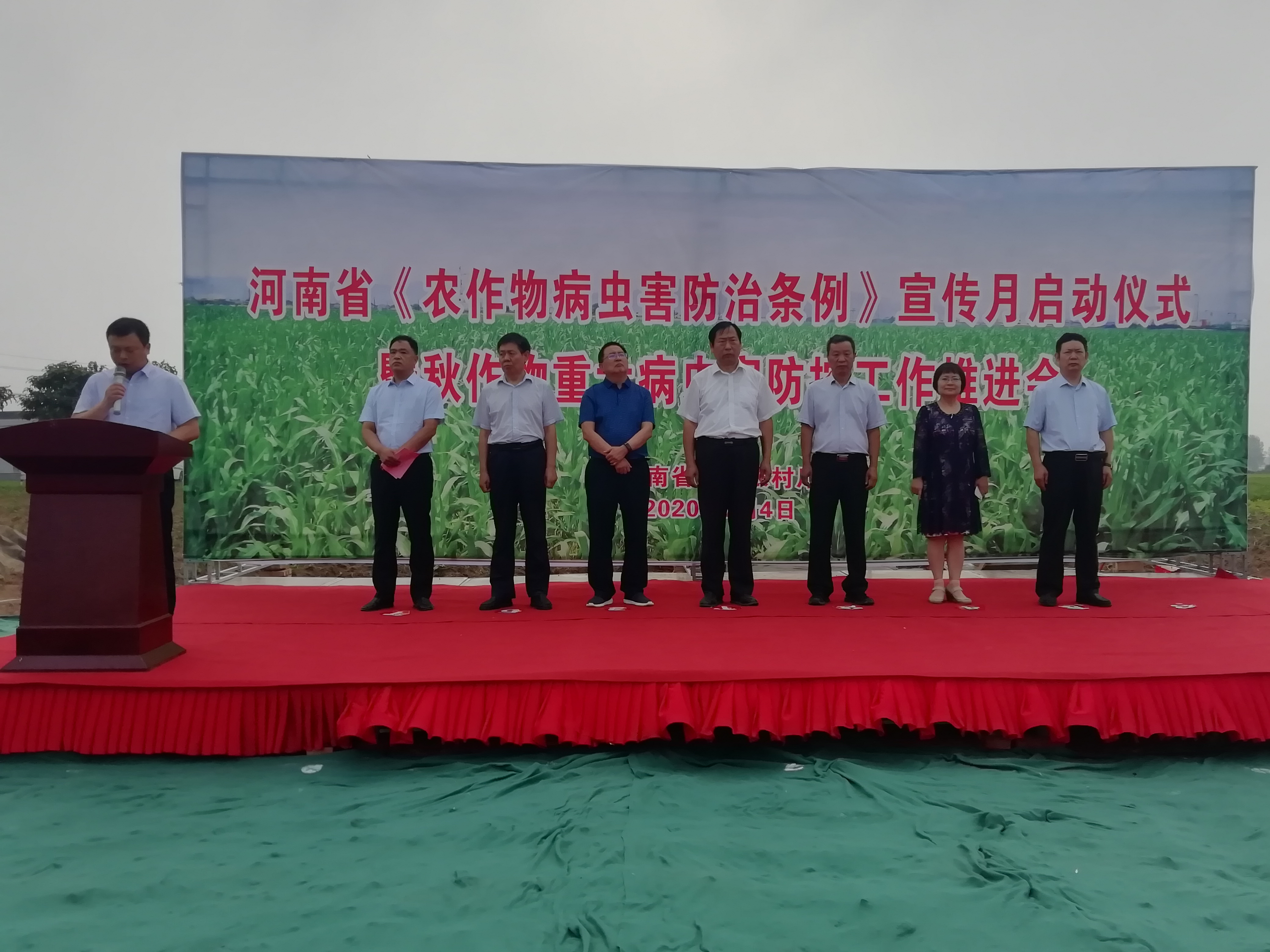 會前,我省《農(nóng)作物病蟲害防治條例》宣傳月啟動儀式在淮陽大連鄉(xiāng)龔橋村舉行。省植保植檢站工作人員向現(xiàn)場群眾宣講了秋作物病蟲害防治技術(shù),發(fā)放了《農(nóng)作物病蟲害防治條例》、《草地貪夜蛾防治掛冊》等資料,與會人員觀摩了淮陽統(tǒng)防統(tǒng)治玉米病蟲害情況。