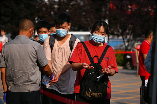 7月7日上午,2020年高考迎來開考,周口市10萬考生步入考場。圖為周口考點(diǎn)的考生入場。