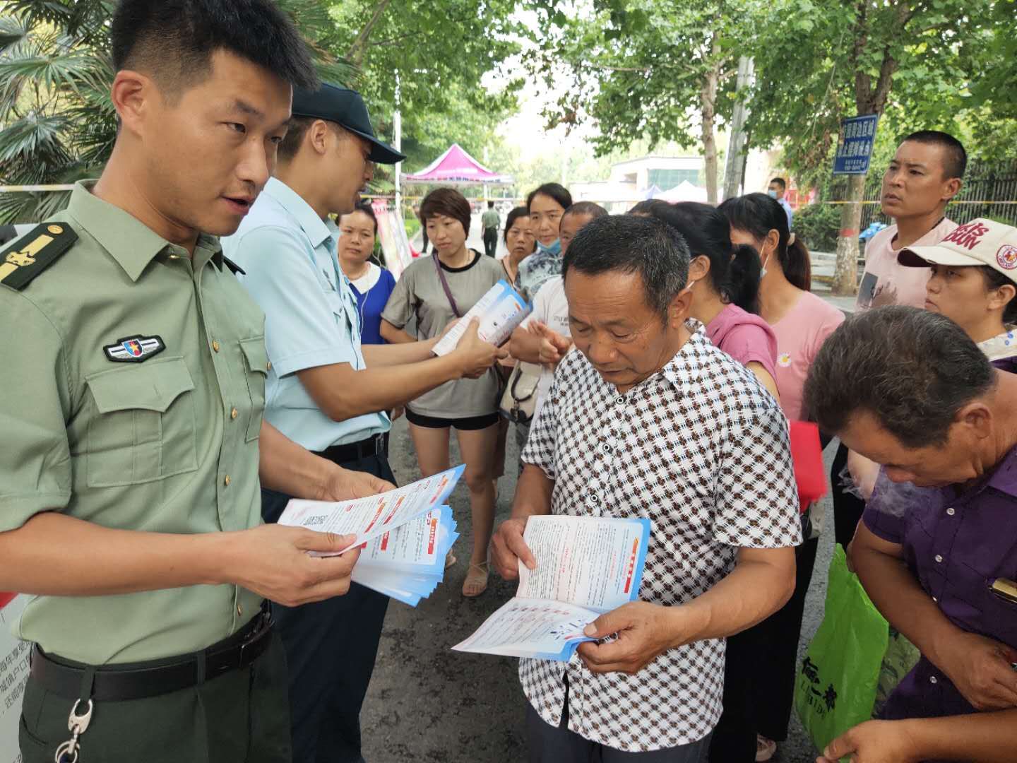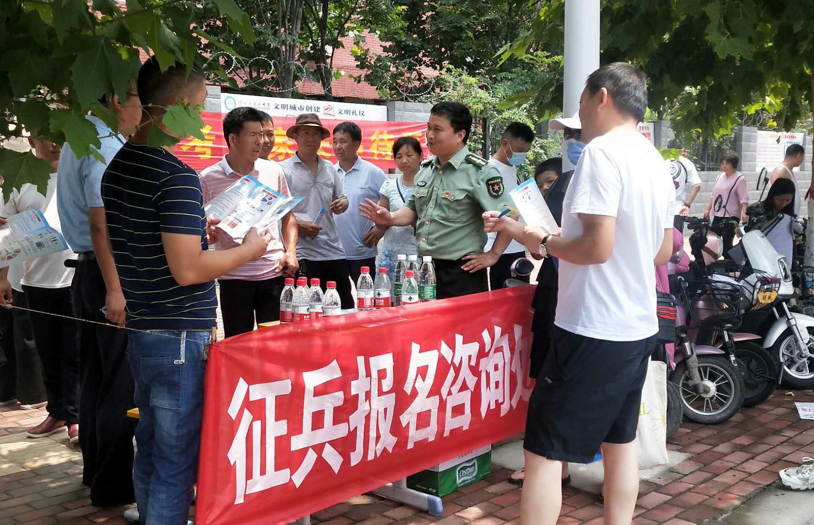 為強化全民依法履行兵役義務觀念,激發(fā)廣大適齡青年特別是高學歷青年參軍入伍熱情,7月7日至8日,項城市人武部組織機關所有人員和21個鎮(zhèn)(街道)辦事處武裝部長等36人,深入各考點設立征兵政策咨詢點,懸掛宣傳標語、擺放宣傳版面,開展以助力高考為目的的大學生征兵宣傳活動。為不影響考場秩序避免打擾高考,7月7日全天,參加宣傳的工作人員悄悄走進家長等待區(qū),現(xiàn)場向廣大考生家長以及過往群眾發(fā)放《應征入伍明白卡》、《大學生入伍優(yōu)惠政策》等征兵宣傳資料,并接受咨詢。7月8日下午5點30分后,為期兩天的高考結(jié)束后考生放松的走出考場大門之際,所有人員同時守在大門外,一邊給考生發(fā)放宣傳資料,一邊接受學生咨詢和報名,給他們講解大學生入伍政策、法規(guī),介紹“應征入伍的政治、文化、身體和年齡條件”、“報名程序”、“就業(yè)安置”等相關內(nèi)容,鼓勵高中畢業(yè)生帶著成績和文化知識投身軍營、報效祖國。