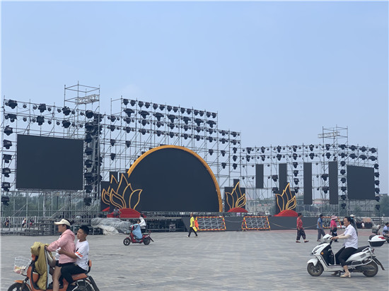 淮陽(yáng)荷花節(jié)開幕式舞臺(tái)在太昊陵廣場(chǎng)廣場(chǎng)造型完工。據(jù)悉,2020年7月10日晚8點(diǎn)在此開幕,同時(shí)在舞臺(tái)東側(cè)的龍湖上將上演全息水幕燈光秀。