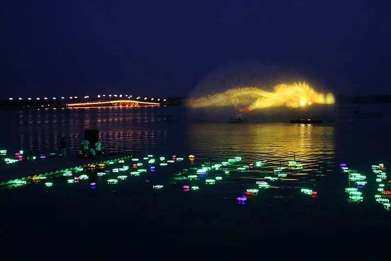隨后,各位領(lǐng)導(dǎo)和嘉賓及數(shù)以千計的群眾觀看了精彩的文藝演出和流光溢彩、聲光兼具的全息水幕燈光秀。