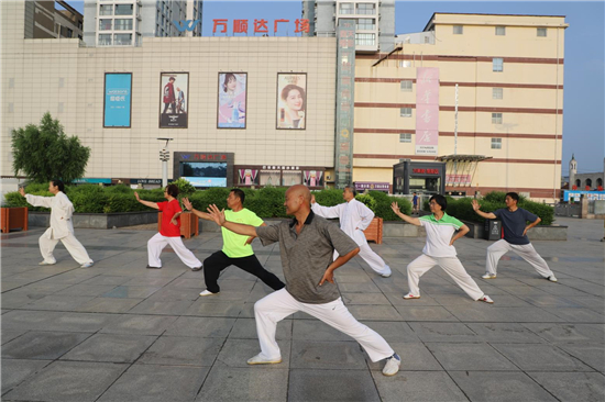 冬練三九,夏練三伏,練出一身真功夫。投伏第一天,周口市武術(shù)協(xié)會會長張志民帶領(lǐng)會員在五一文化廣場習(xí)練新編和氏26式太極拳。記者 王凱 攝