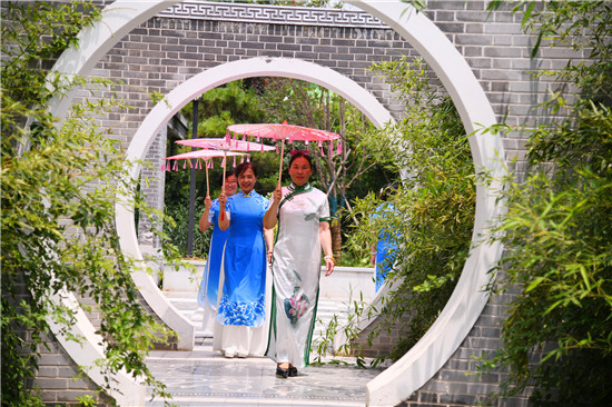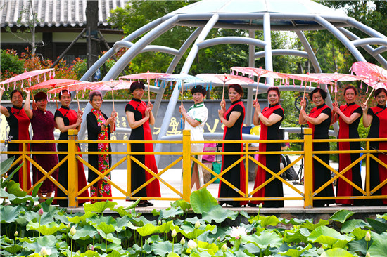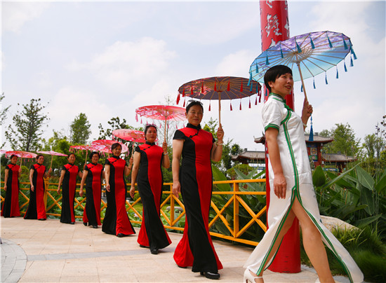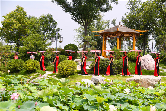 周口森林公園經(jīng)過(guò)近年的建設(shè)已經(jīng)成為市區(qū)休閑的一處好去處,風(fēng)景優(yōu)美,園林幽深,目前,盡管森林公園附近道路施工,進(jìn)出還不方便,但是仍吸引著很多居民前去休閑游玩,愛(ài)美的大媽們更是在這里秀一把,7月16日上午,來(lái)自市區(qū)模特隊(duì)的大媽們,穿著靚麗的旗袍,在荷葉飄香、假山園林秀林深處,開(kāi)心地進(jìn)行一場(chǎng)模特秀。