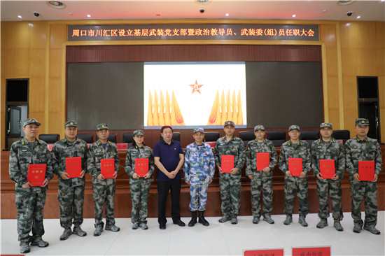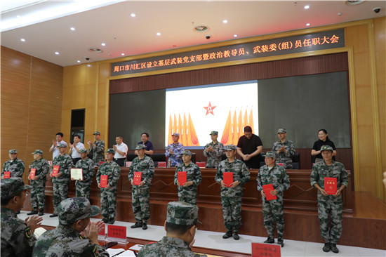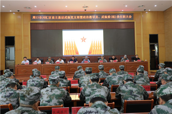 黨管武裝建設(shè)國防,軍民攜手共筑長城。為健全武裝工作組織領(lǐng)導(dǎo)體系為推動(dòng)國防動(dòng)員和后備力量建設(shè)在基層末端落實(shí),7月16日上午,周口市川匯區(qū)召開基層武裝黨支部暨政治教導(dǎo)員、武裝委(組)員任職大會(huì)。周口軍分區(qū)司令員湯維政,區(qū)委書記、區(qū)人武部黨委第一書記李宗喜,周口軍分區(qū)政治工作處主任李揚(yáng),市委組織部副處級(jí)調(diào)研員宋陽,區(qū)人武部政委高新傳、部長陳繼芳及城鄉(xiāng)一體化示示范區(qū)、經(jīng)濟(jì)開發(fā)區(qū)、港口物流產(chǎn)業(yè)聚集區(qū)等有關(guān)負(fù)責(zé)同志參加了大會(huì)。會(huì)上設(shè)立了18個(gè)基層武裝黨支部,任命了15名基層武裝部政治教導(dǎo)員、20名村(社區(qū))武裝委(組)員任職命令,武裝部政治教導(dǎo)員、武裝預(yù)建黨支部書記和兼職武裝委(組)員代表先后作了履職承諾發(fā)言,湯維政等為新任命的人員頒發(fā)了任職證書。