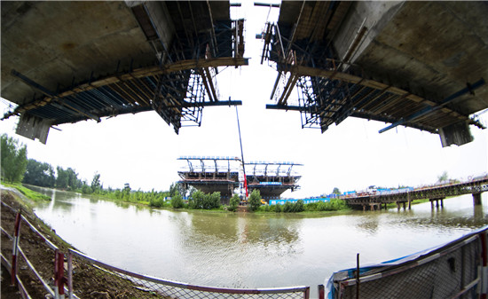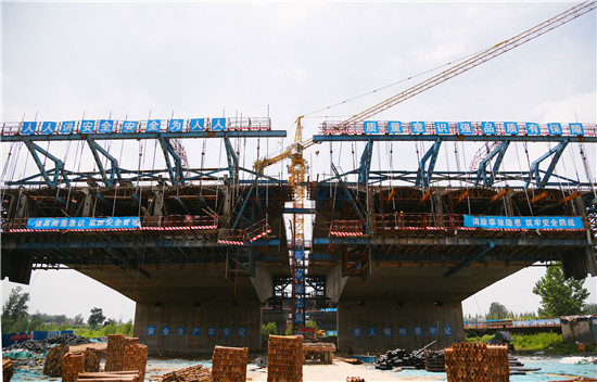 周口:北環(huán)跨賈魯河大橋施工緊鑼密鼓 力爭年底合攏