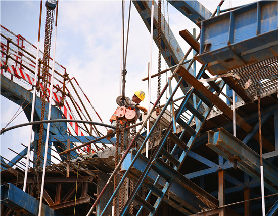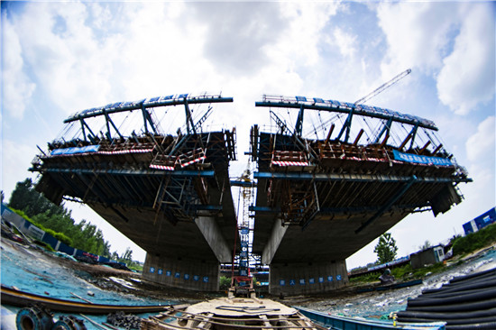 周口北環(huán)跨賈魯河大橋是我市在建重點工程,全長904米,其中主橋總長286米,共3跨,采用懸澆法施工。7月16日中午,記者在工地看到,經(jīng)過一年多的施工,工程完成80%左右,為了保障工期和質(zhì)量,工人們冒著酷暑,在跨河的兩列橋墩上,忙碌著澆鑄施工,隨著澆鑄橋體的延伸,預(yù)計年底橋體完成合攏。