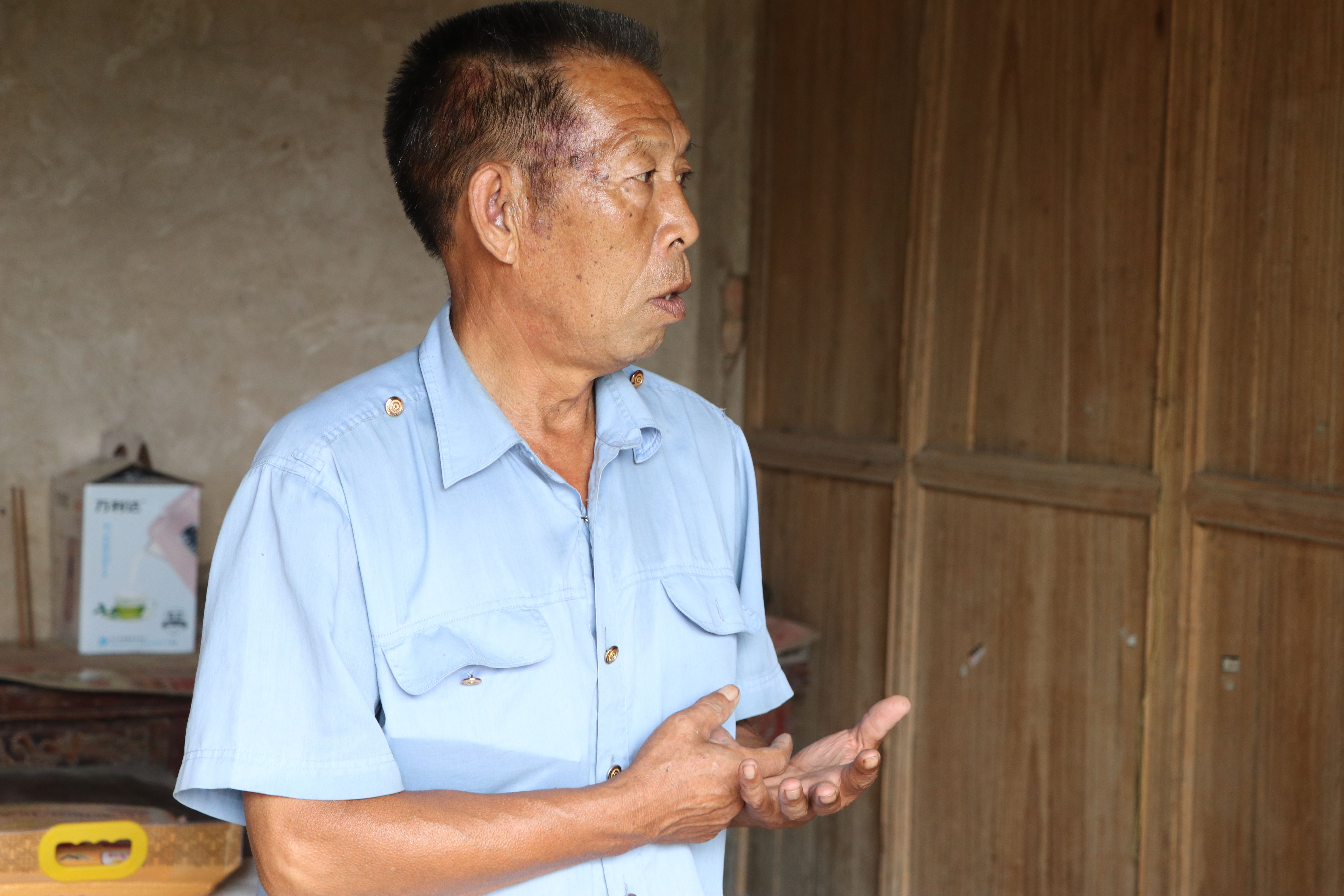 孫朝杰一人扛起了家里的大小事,盡心盡力地照顧母親,院里院外從不遠行,他不能外出打工,生活拮據(jù)??h委組織部駐村干部尚衛(wèi)東第一次跟著支部書記孫玉彬一起到孫朝杰家里走訪時,他正背著母親到門口曬太陽,看到他們,孫朝杰有些窘迫。