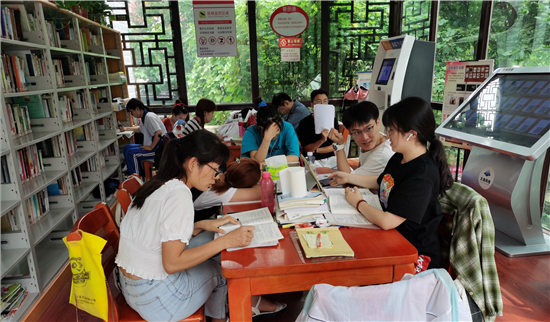 自進入暑假以來,市圖書館接待人數(shù)居高不下,其中學生居多。不少學生來此學習、寫暑假作業(yè),他們感到圖書館環(huán)境靜謐,有學習氛圍。在市區(qū)的各個智慧圖書館內有時還會出現(xiàn)了“一座難求”的現(xiàn)象。但大家都自覺遵守圖書館的紀律,沒有一絲噪音。