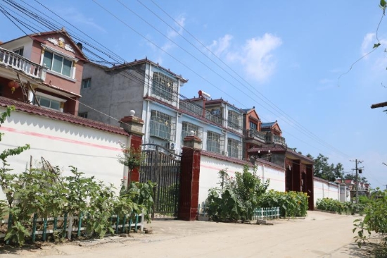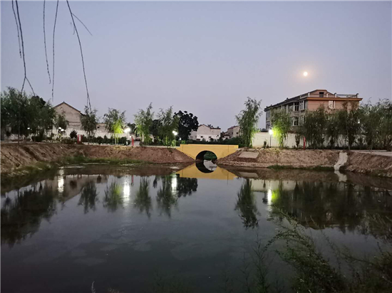 “整治后的坑塘邊綠村成蔭,不時(shí)有小鳥掠過水面又飛回樹梢;村頭巷尾、花開四季,孩童們在村中追逐嬉鬧,老人們在村道上怡然自得地徜徉散步,歡笑不斷;群眾文化廣場上,村民集聚在這里休閑、娛樂、健身,成了村里人氣最旺的地方?!绷硪粋€(gè)具有代表性的鄉(xiāng)村振興新版本是馬鋪鎮(zhèn)最南端軍吳行政村,這個(gè)村子位于惠濟(jì)河北岸,207省道橫穿南北,轄軍吳,高口,高莊,吳樓,許莊,王莊,豆腐營七個(gè)自然村,耕地面積4288畝,總?cè)丝跀?shù)4236人。近年來,這個(gè)村子除大力發(fā)展中藥材、蔬菜等經(jīng)濟(jì)作物種植外,還以“二四四”工程和“雙強(qiáng)”村創(chuàng)建為抓手,開展“美麗鄉(xiāng)村”行動(dòng),打造美麗庭院,對(duì)村中主次道路進(jìn)行硬化、綠化、美化、亮化,發(fā)展以生態(tài)為底色的宜居宜游農(nóng)旅村落,成為鹿邑縣首批“千萬工程”示范村。