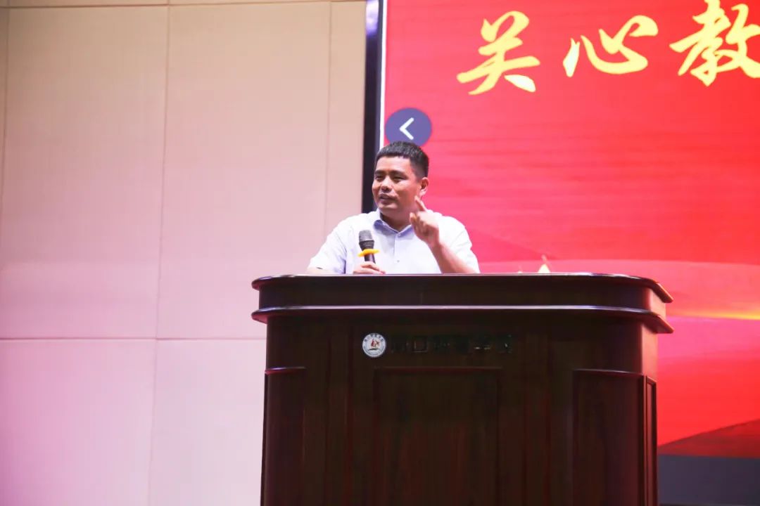 新星學校董事長劉永文作回憶了自己辦學的艱辛歷程和初心,講了自己作為一名老師至今對教師崗位的眷戀和熱愛;表達了對教師這個群體的深情,表達了他對教師群體要盡綿薄之力的心愿。他的講話真誠坦率,侃侃而談,贏得了一陣陣掌聲。