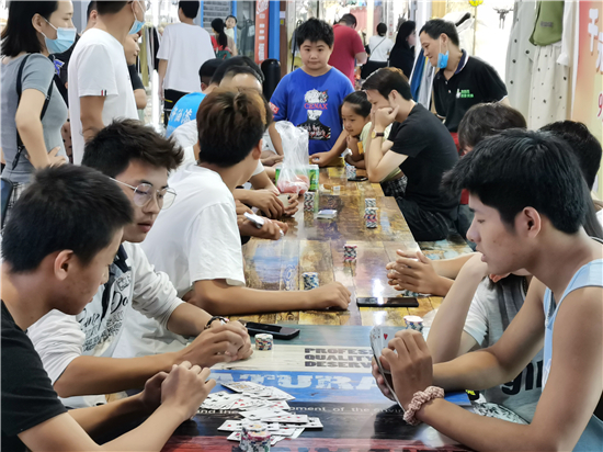 9月13日下午,在位于五一地下廣場(chǎng)的周口·果果茂內(nèi),不少市民在參加網(wǎng)紅斗地主爭(zhēng)霸賽活動(dòng)。據(jù)了解,該活動(dòng)是每周六、周日舉行,不少來此購物的市民參加了此項(xiàng)活動(dòng)。主辦方不收取費(fèi)用,主要是為了給購物們市民增加點(diǎn)娛樂,增強(qiáng)購物中心的人氣。此前還舉辦過五子棋比賽等活動(dòng)。