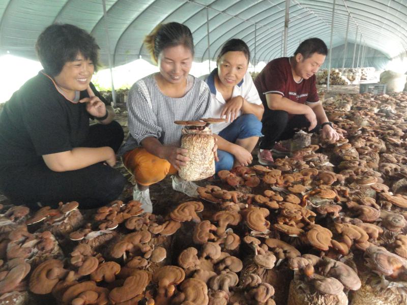 9月15日,商水縣黃寨鎮(zhèn)楊營村“蘑菇王”楊秀麗(左二)在蘑菇扶貧產(chǎn)業(yè)園里向食用菌種植戶傳授靈芝管理技術(shù)。近年來,黃寨鎮(zhèn)通過政策扶持、項(xiàng)目促動(dòng)、培訓(xùn)指導(dǎo)等舉措,采用“合作社+基地+貧困戶”等模式,集種植、加工、銷售為一體,加快推進(jìn)食用菌全產(chǎn)業(yè)鏈開發(fā),帶動(dòng)了周邊300多人種植食用菌脫貧致富。喬連軍 攝