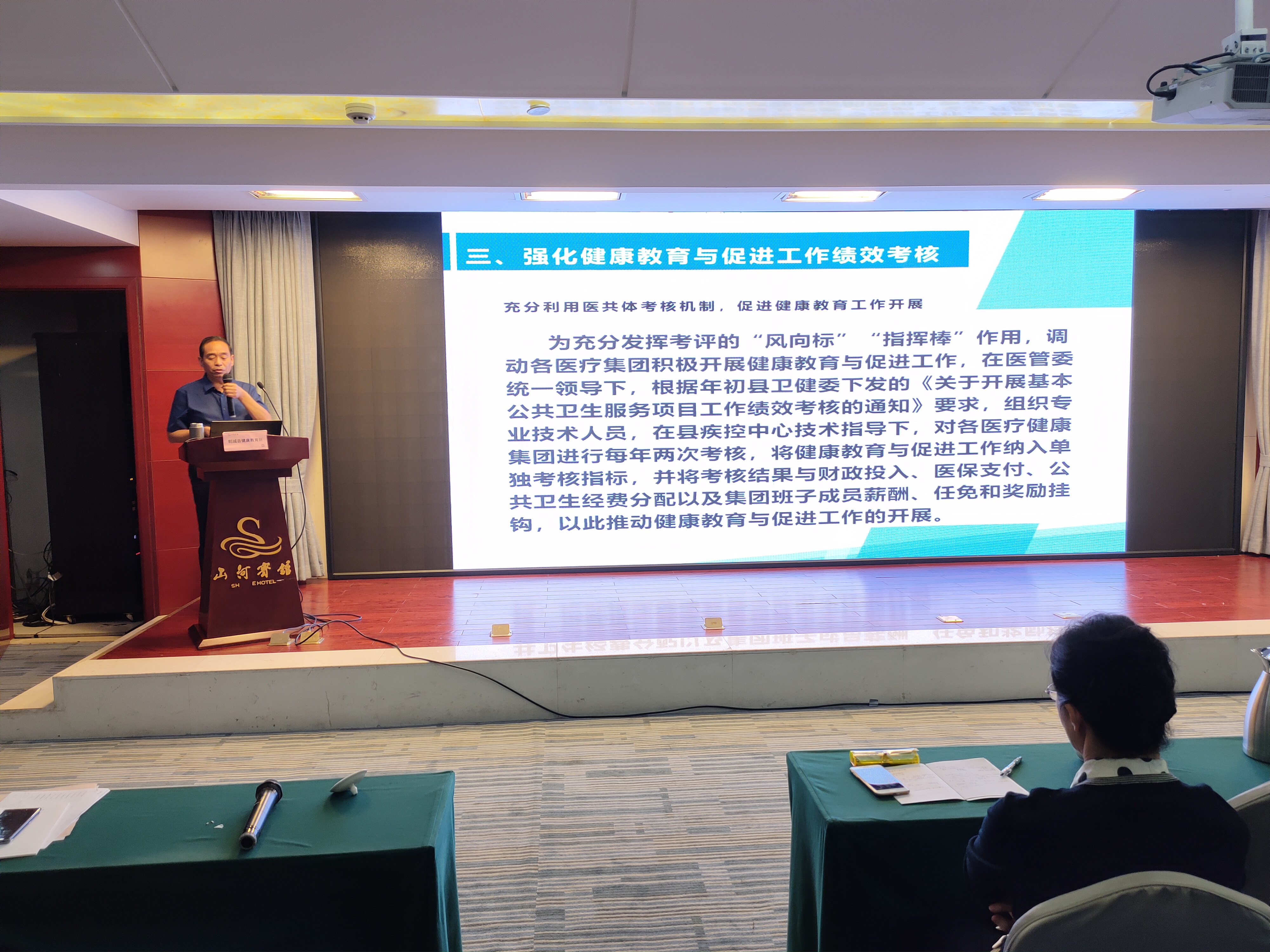 9月23日至24日,河南省疾病預(yù)防控制中心在鄭州舉辦基本公共衛(wèi)生服務(wù)健康教育工作能力培訓(xùn)班。鄲城縣受邀在會上作工作經(jīng)驗交流,縣疾控中心主任張吉志以“高位推動 多措并舉 明確責(zé)任 重抓落實”為題,全面、詳細(xì)地介紹了在醫(yī)共體背景下健康促進(jìn)工作的開展情況。