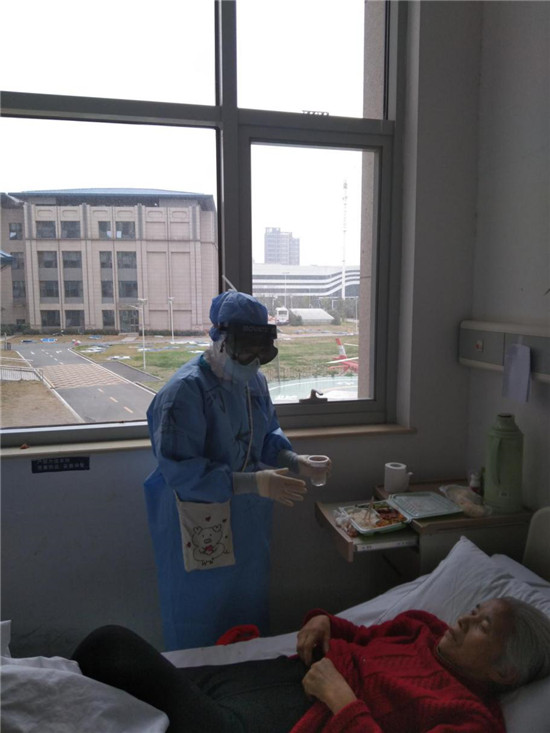 因?yàn)樾鹿诜窝撞簧倩颊叨际抢先?,加上基礎(chǔ)疾病較重,不少患者生活不能自理。因?yàn)閺?qiáng)感染性不允許家屬照顧,在病區(qū),胡奔奔需要經(jīng)常為患者擦洗身體、處理大小便問題,處理排泄物、打掃病房衛(wèi)生消毒也成為她在重癥病區(qū)里常見的工作,需要付出比平常工作更多的精力來執(zhí)行這繁重的勞動(dòng),而且要在穿戴著防護(hù)裝備的笨拙情況下,體力消耗更大。