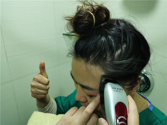 出征武漢之前,為減少感染自己、感染別人的風(fēng)險(xiǎn),出生于1991年、和同齡人一樣愛美的胡奔奔毅然決定同意剃去一襲披肩長(zhǎng)發(fā)。這頭秀發(fā),胡奔奔留了多年,曾經(jīng)看得跟生命一樣珍貴,但疫情險(xiǎn)惡,她義無反顧。