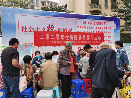 9月25日早上,周口市城鄉(xiāng)一體化示范區(qū)文昌社區(qū)衛(wèi)生服務(wù)中心的醫(yī)務(wù)人員在建業(yè)小區(qū)為居民測(cè)量血壓,并建立健康檔案。為滿足社區(qū)廣大群眾基本醫(yī)療衛(wèi)生服務(wù)需求,更貼心為轄區(qū)居民的服務(wù),文昌社區(qū)衛(wèi)生服務(wù)中心開(kāi)展2020年優(yōu)質(zhì)服務(wù)基層行活動(dòng),文昌社區(qū)衛(wèi)生服務(wù)中心組織醫(yī)務(wù)人員不定時(shí)走進(jìn)各個(gè)小區(qū),為居民進(jìn)行基礎(chǔ)項(xiàng)目體檢,并建立居民健康檔案。