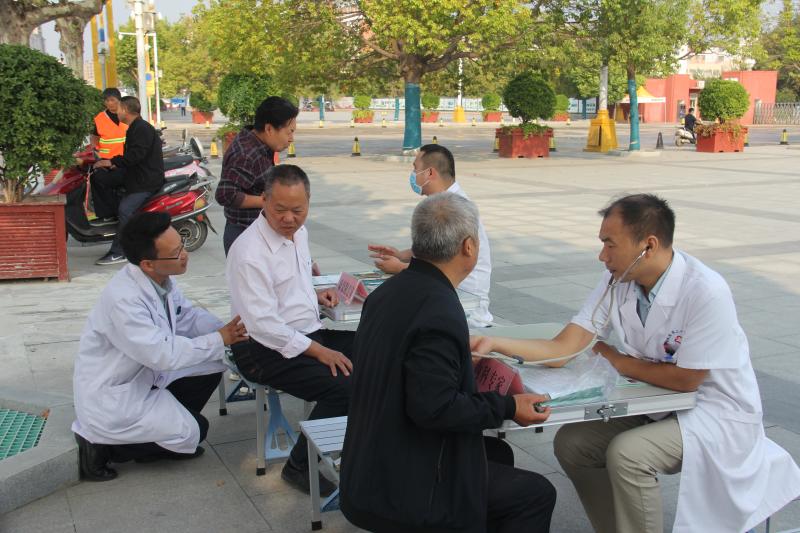 義診活動現(xiàn)場,通過懸掛主題宣傳橫幅、擺放健康知識宣傳展板、設(shè)置義診咨詢服務(wù)臺、發(fā)放健康促進(jìn)宣傳折頁等方式為群眾進(jìn)行健康知識宣教。前來咨詢就診的群眾絡(luò)繹不絕,醫(yī)務(wù)人員熱情地為群眾提供免費測量血壓、血糖等服務(wù),耐心細(xì)致地解答群眾健康咨詢并給予診療建議,提醒平時多多加強(qiáng)鍛煉,注意健康飲食。