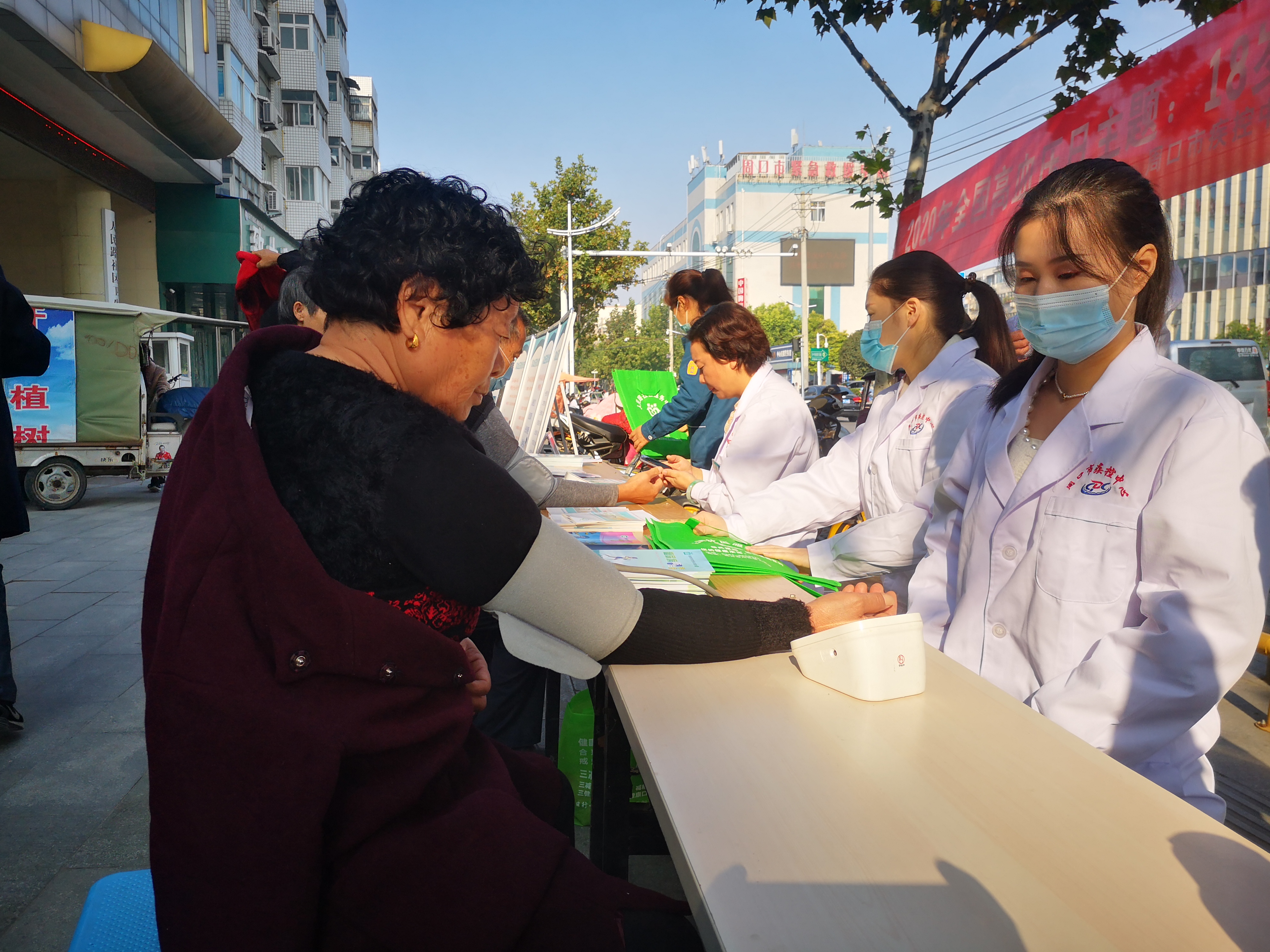 10月8日是第23個(gè)全國高血壓日,周口巿疾控中心積極開展防治高血壓科普知識(shí)宣傳活動(dòng),在人民路東段設(shè)立咨詢義診臺(tái),為前來咨詢的群眾測(cè)量血壓、血糖,向群眾宣傳“合理膳食,適量運(yùn)動(dòng)”“健康心率、健康血壓”等知識(shí)。圖為市疾控中心工作人員為過往群眾測(cè)量血壓。