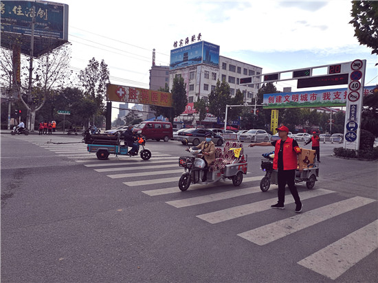 每天早晚市民、學(xué)生出行的兩個(gè)交通高峰時(shí)段,在沈丘縣兆豐大道與陽(yáng)光路交叉口,沈丘縣自然資源局志愿者身著紅馬甲,佩戴“文明勸導(dǎo)”袖章,舉指揮旗,掛口哨,在交通路口認(rèn)真履行“文明交通勸導(dǎo)”志愿者職責(zé),發(fā)放倡議書,耐心引導(dǎo)機(jī)動(dòng)車、非機(jī)動(dòng)車及行人遵守交通規(guī)則,遇到老人、小孩過(guò)斑馬線時(shí),志愿者們立即上前幫扶;面對(duì)交通違規(guī)行為,志愿者們耐心上前勸說(shuō)。志愿者們以高度的社會(huì)責(zé)任感、昂揚(yáng)的精神面貌展現(xiàn)了他們的良好形象,為廣大市民營(yíng)造一個(gè)平安的出行環(huán)境,贏得了市民的大力稱贊。