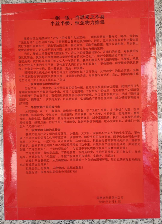 西華縣供電公司:“光盤行動”成習(xí)慣 文明節(jié)儉倡新風(fēng)