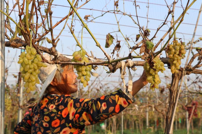 隨著示范引領(lǐng)和套袋技術(shù)的推廣與應(yīng)用,華恩的華山梨、金手指葡萄等特色水果,從外觀到內(nèi)質(zhì)、從采供期到銷售價,有了大大提高?!坝捎谠奂宜滩捎脽o公害種植,2020年9月取得了國家綠色食品認證?!睆埓河⒔榻B,現(xiàn)在華恩生產(chǎn)的水果已經(jīng)走進鄭州、武漢等周邊城市的商超銷售。平時來園子里采摘的游客絡(luò)繹不絕。