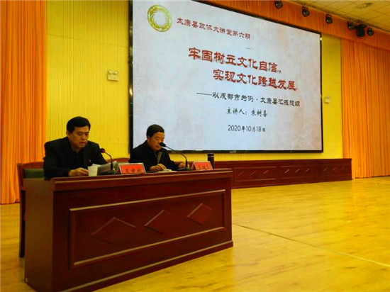 朱樹喜用真摯的情感、樸實的語言、親身的經(jīng)歷和深切的感悟,給全體人員進行了精彩授課。朱樹喜的報告高屋建瓴、內(nèi)涵豐富、博學(xué)卓識,既站位高遠,又緊貼太康實際;既有精道的理論,又有豐富的實踐,必將為太康文化建設(shè)健康發(fā)展起到不可估量的作用。
