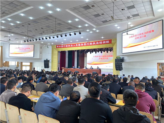 10月19日,商水縣召開行政執(zhí)法人員服務型執(zhí)法培訓會??h委常委、政法委書記、縣政府黨組成員王勇,市司法局黨組成員、副局長鄭啟新,市司法局依法行政指導科科長楊玉芹出席培訓會。縣司法局黨組書記、局長王洪輝主持會議。
