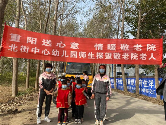 東夏亭鎮(zhèn)北街中心幼兒園園長(zhǎng)袁百成說(shuō):“重陽(yáng)節(jié)也是老人節(jié)。帶領(lǐng)小朋友們到敬老院開(kāi)展慰問(wèn)老人活動(dòng),就是要從小培養(yǎng)他們尊老、愛(ài)老、敬老的情懷,發(fā)揚(yáng)尊老、愛(ài)老、敬老的優(yōu)良傳統(tǒng)。也讓敬老院的孤寡老人真正感受到來(lái)自大家庭的溫暖?!?/p>