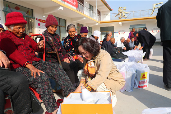 10月23日,在一年一度的重陽(yáng)節(jié)即將到來(lái)之際,市人大代表薛華杰、楊輝等組團(tuán)來(lái)到太康縣城郊鄉(xiāng)王東月居村聯(lián)養(yǎng)點(diǎn),給這里的特困老人每人送去一雙愛(ài)心鞋,讓老人感受到了“有兒有女”的快樂(lè)。