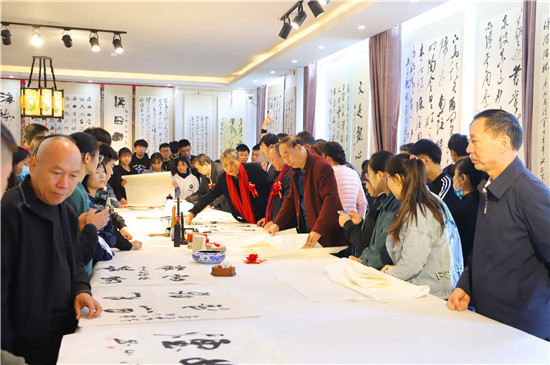 10月15日,重陽節(jié)。中國書法之鄉(xiāng)鄲城縣書協(xié)主席巴云山和資深書法家張樹銀、杜長青、崔傳明等人一道,在該縣八斗文化藝術中心舉行揮毫慶重陽的義寫活動。許多老藝術家和年輕學生歡聚一堂,過了一個別樣的重陽節(jié)。