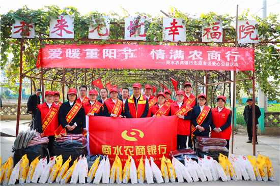 這是商水農(nóng)商銀行紀(jì)委書記、監(jiān)事長張宇帶領(lǐng)該行志愿者服務(wù)隊正在開展“愛暖重陽節(jié) 情滿農(nóng)商行”走訪慰問活動。