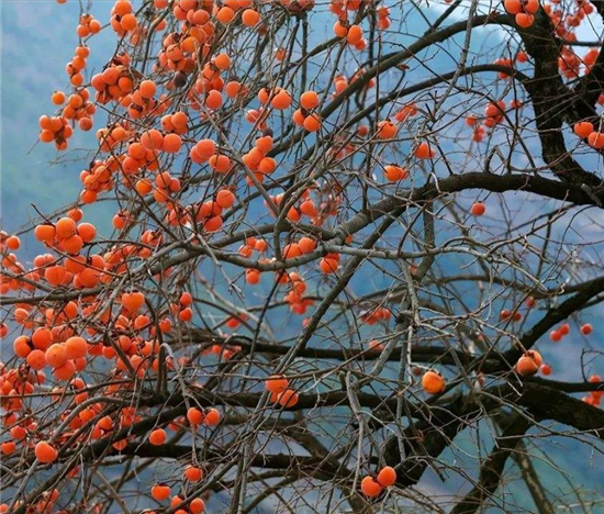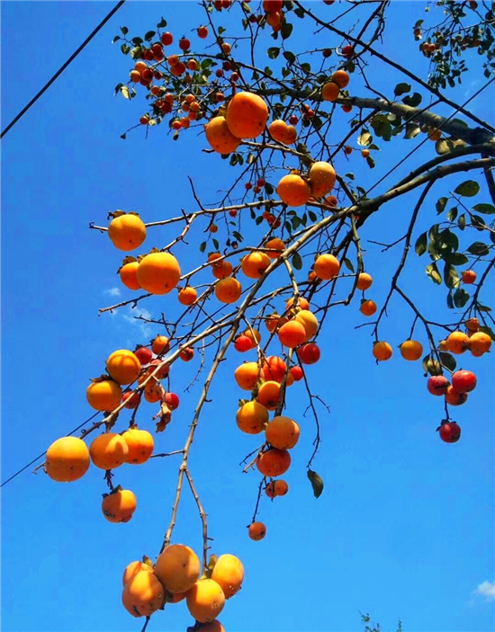 周口道路旁碩果累累的柿子樹(shù)