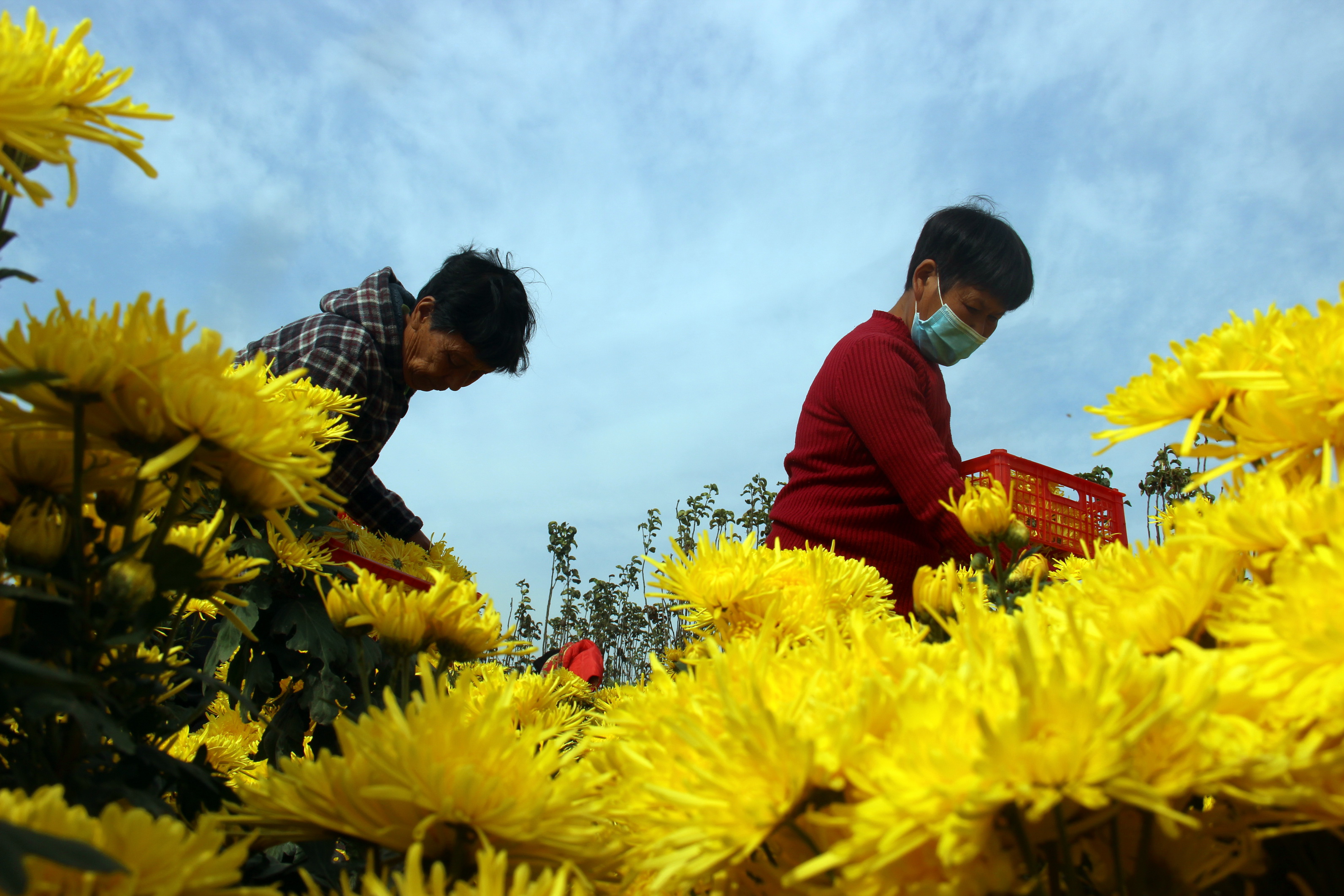 11月3日,商水縣郝崗鎮(zhèn)大路李村貧困戶(hù)婦女在李華生的合作社采收金絲黃菊。郝崗鎮(zhèn)政府鼓勵(lì)大路李村負(fù)責(zé)人李華生引進(jìn)金絲黃菊種植帶動(dòng)貧困戶(hù)增收致富,目前該村種植面積達(dá)到百畝,畝效益均在6000元以上。記者付永奇通訊員呂耀光攝