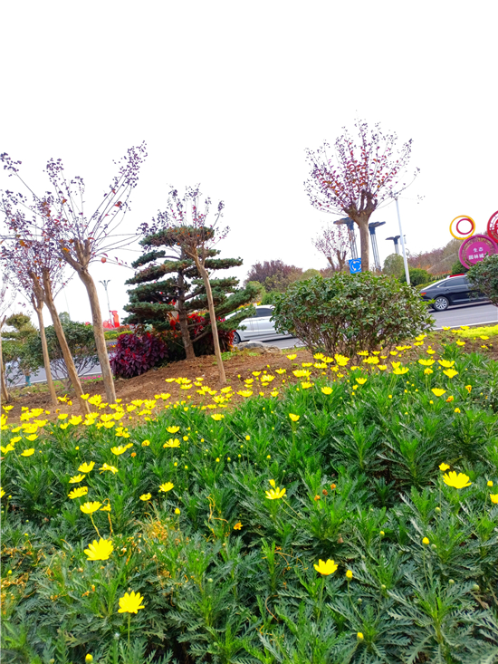 圖為市區(qū)道路旁的花朵